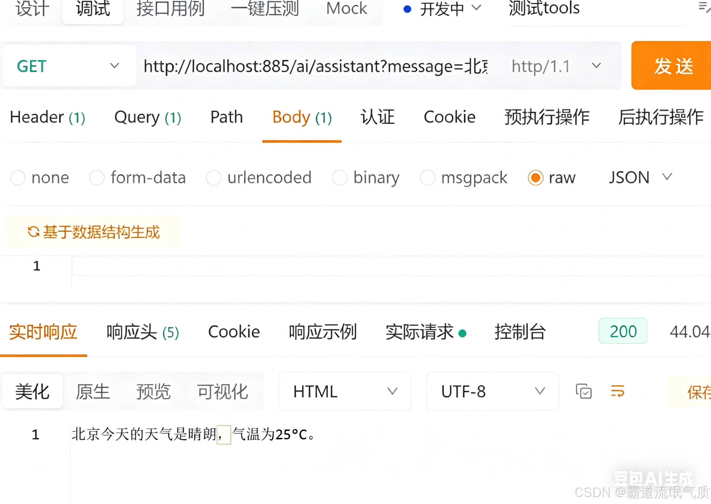 curl "http://localhost:885/ai/chat?message=北京天气怎么样?"