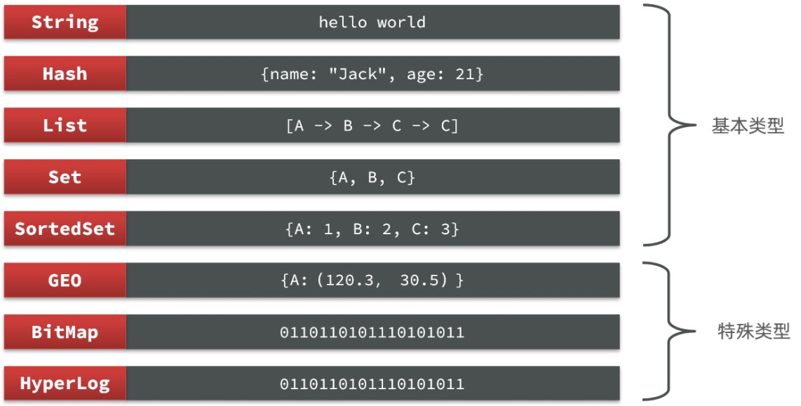 Redis是典型的key-value数据库,key一般是字符串,而value包含很多不同的数据类型