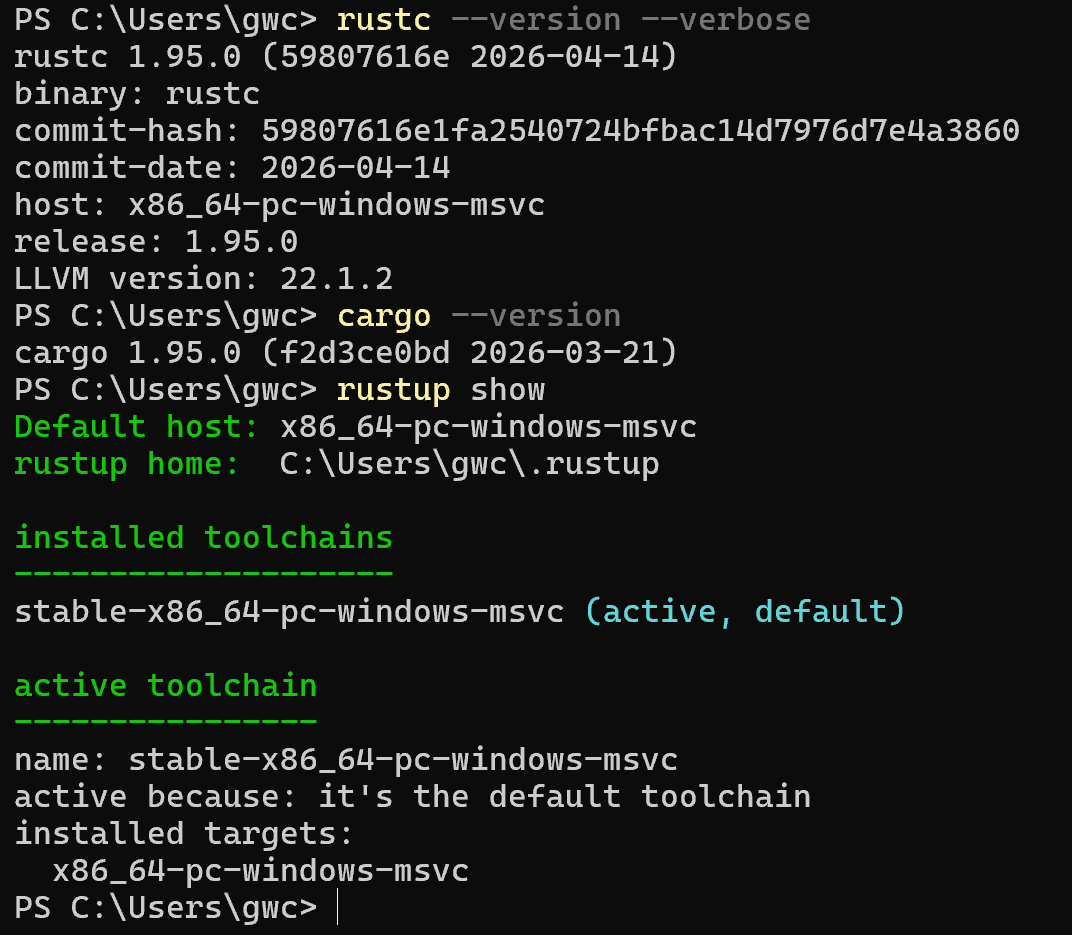 📌 规范依据 :Rust官方2026年稳定版文档、MinGW-w64官方规范、Visual Studio官方文档
