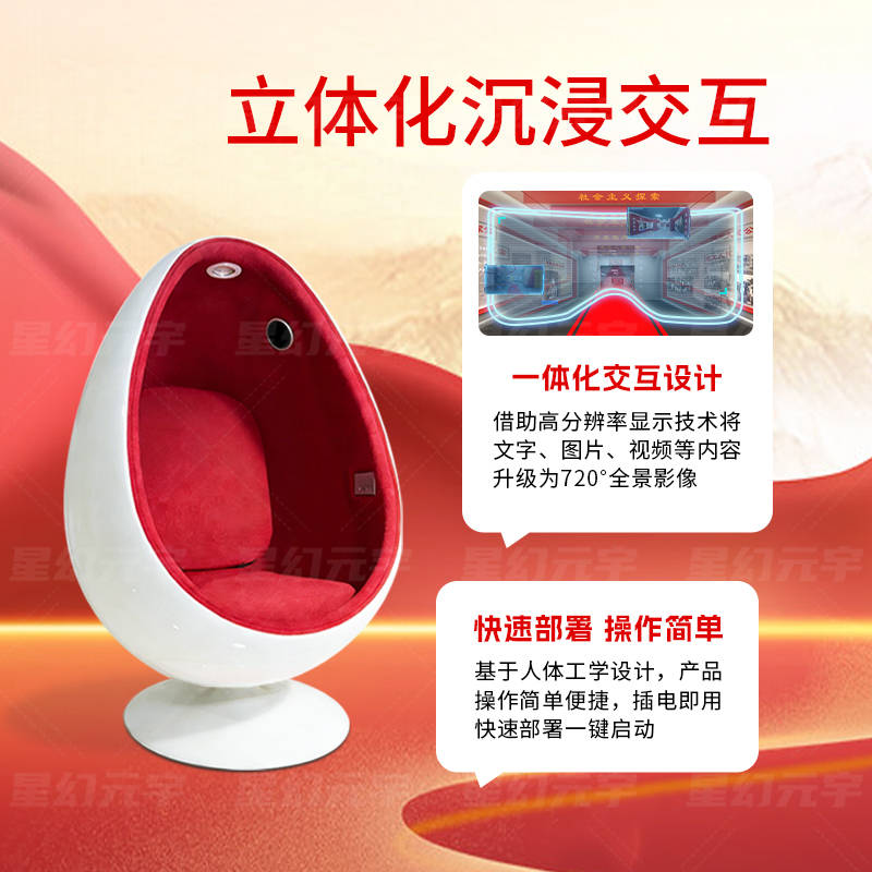 VR党建蛋椅并非单纯的"展示设备",而是党建学习体系中的一种有效补充。通过科技手段的融入,让党建内容更加生动、可感知,有助于提升学习积极性,推动党建教育从"被动学习"向"主动参与"转变。