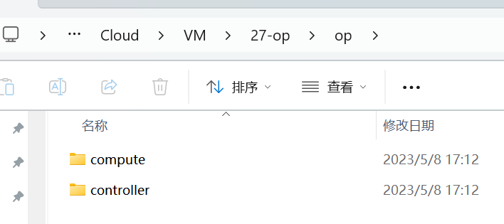 文件op.rar,下载过来之后,直接解压,就会得到两个目录controller,一个compute,环境已经安装好了。