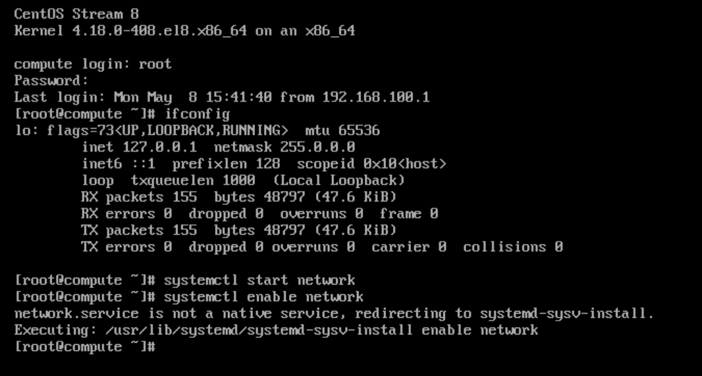环境没有启用network服务,需要手工启动一下,systemctl start network;systemctl enable network。