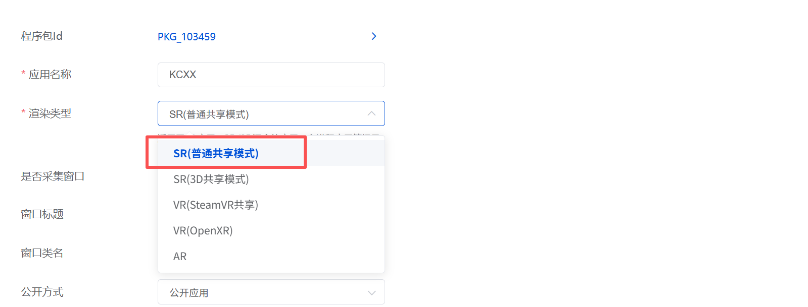 步骤 5:设置正确的渲染类型 编辑已发布的应用程序,并将渲染类型 更改为**SR(普通共享模式),**确保2D登录门户与3D头像协同正常运行。