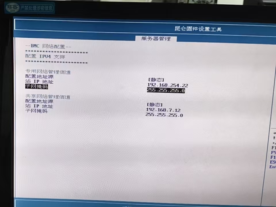 2、进入bios页面配置bmc地址(专用网络管理信道)