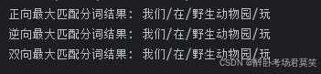 - 剩余文本为"在野生动物园玩",重复上述步骤进行分词。