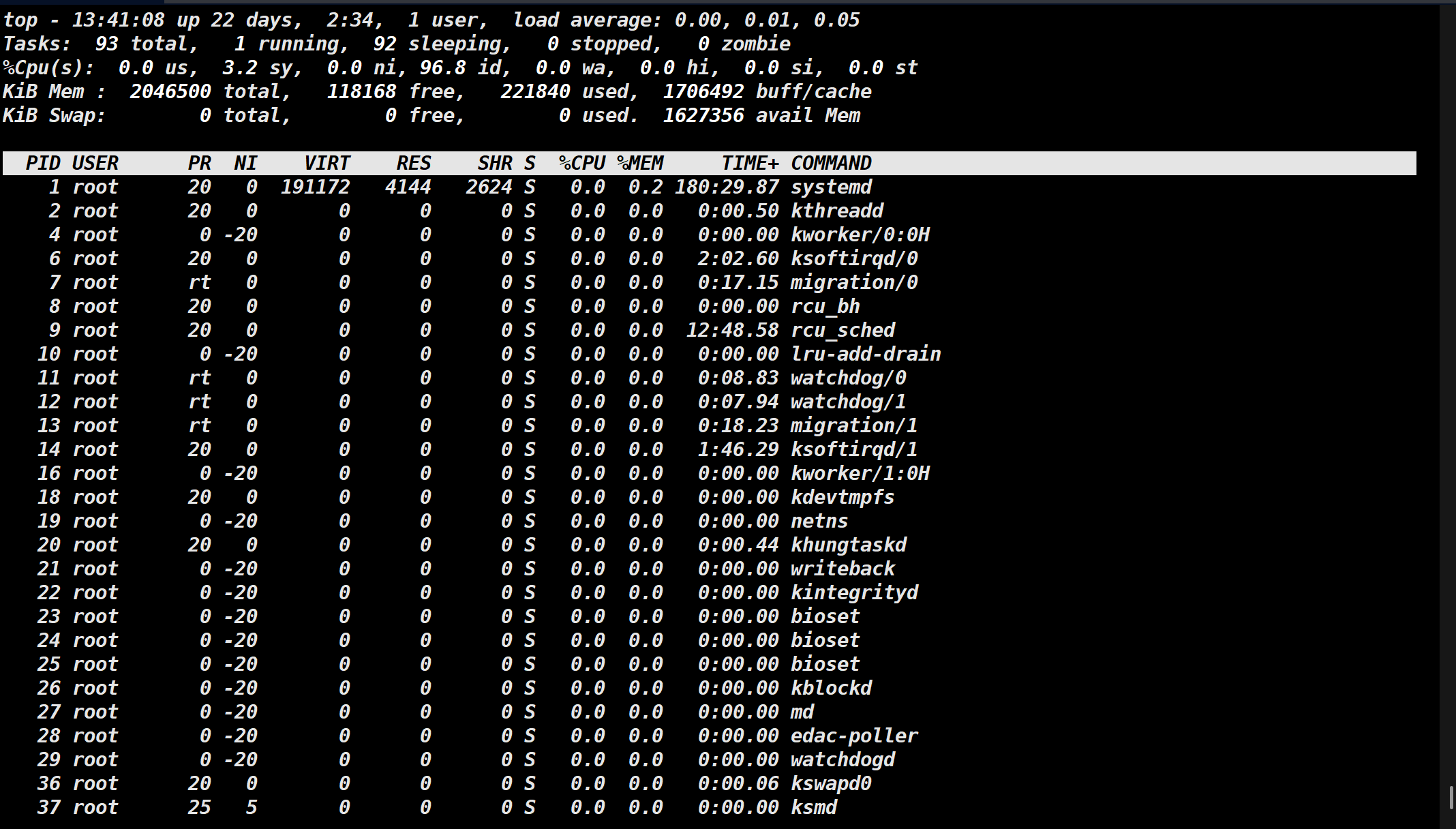 - 指令作用:实时动态地查看系统的整体运行情况。它会显示系统负载、CPU 使用率、内存消耗以及正在运行的各个进程的资源占用情况,类似于 Windows 的"任务管理器"。