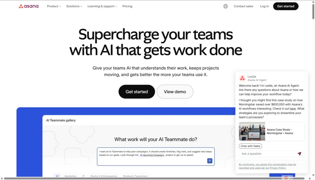 4、Asana + 适合标准化协作与跨团队推进的 SaaS 工具