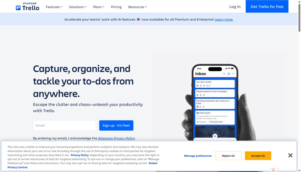 推荐理由: Trello 的优势一直很稳定,就是简单。很多团队从表格迁移到任务工具时,都会先看它,因为理解成本低、上手快。