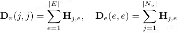 令 X^(0) ∈ R^{|Nv|×d} 为堆叠的 query patch 特征,第 j 行对应视觉节点 p_{q,j}。给定关联矩阵 H,采用遵循节点-超边-节点聚合方案的超图卷积算子。节点度与超边度矩阵定义为: