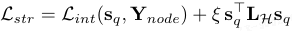 损失项2:超图结构正则化:采用结构约束在推断拓扑上传播稀疏监督。令 s_q 为节点级异常分数,该分支监督为: