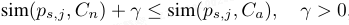 为规整诱导的语义空间,本文在语义诱导中施加基于间隔的对齐约束。令 sim(⋅,⋅) 为余弦相似度。对第 j 个 patch token p_{s,j} ∈ P_s,要求: