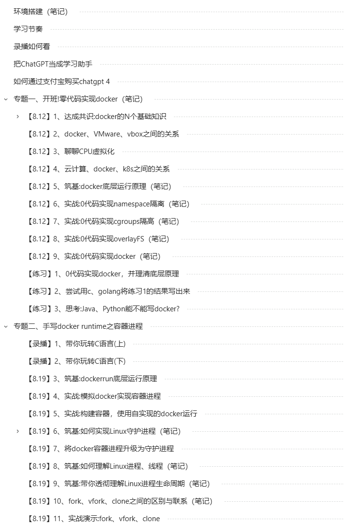 docker是如何实现的呢?基于Linux内核提供的namespace+cgroups+overlayfs实现的。细节不展开了,如果你想深入学习,我之前做过课程《手写docker》