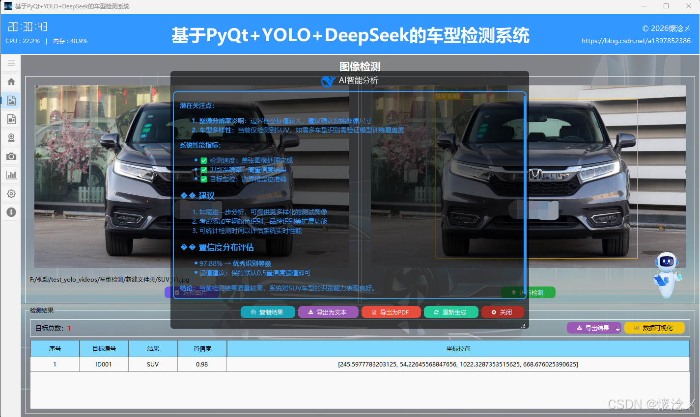 @项目名称:基于PyQt+YOLO+DeepSeek的车型检测系统