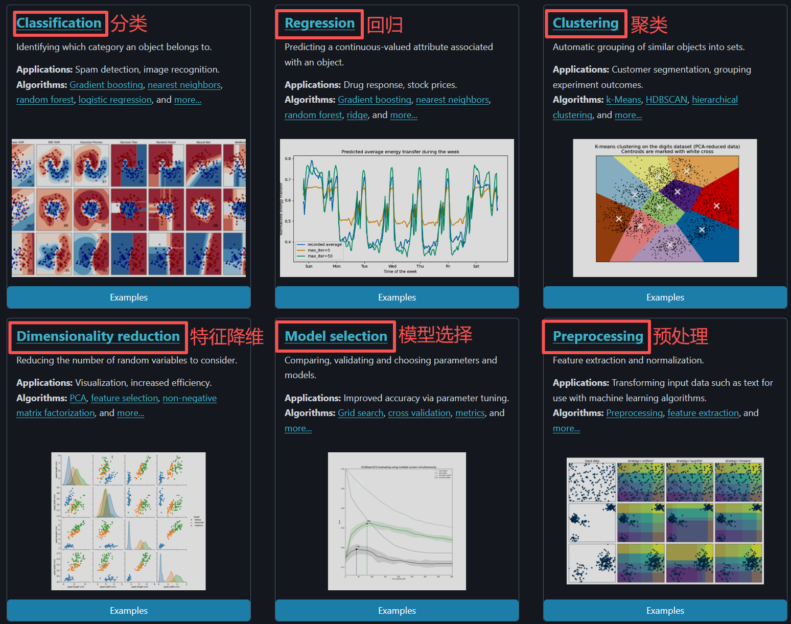 2️⃣算法:分为分类的、回归的、聚类的;