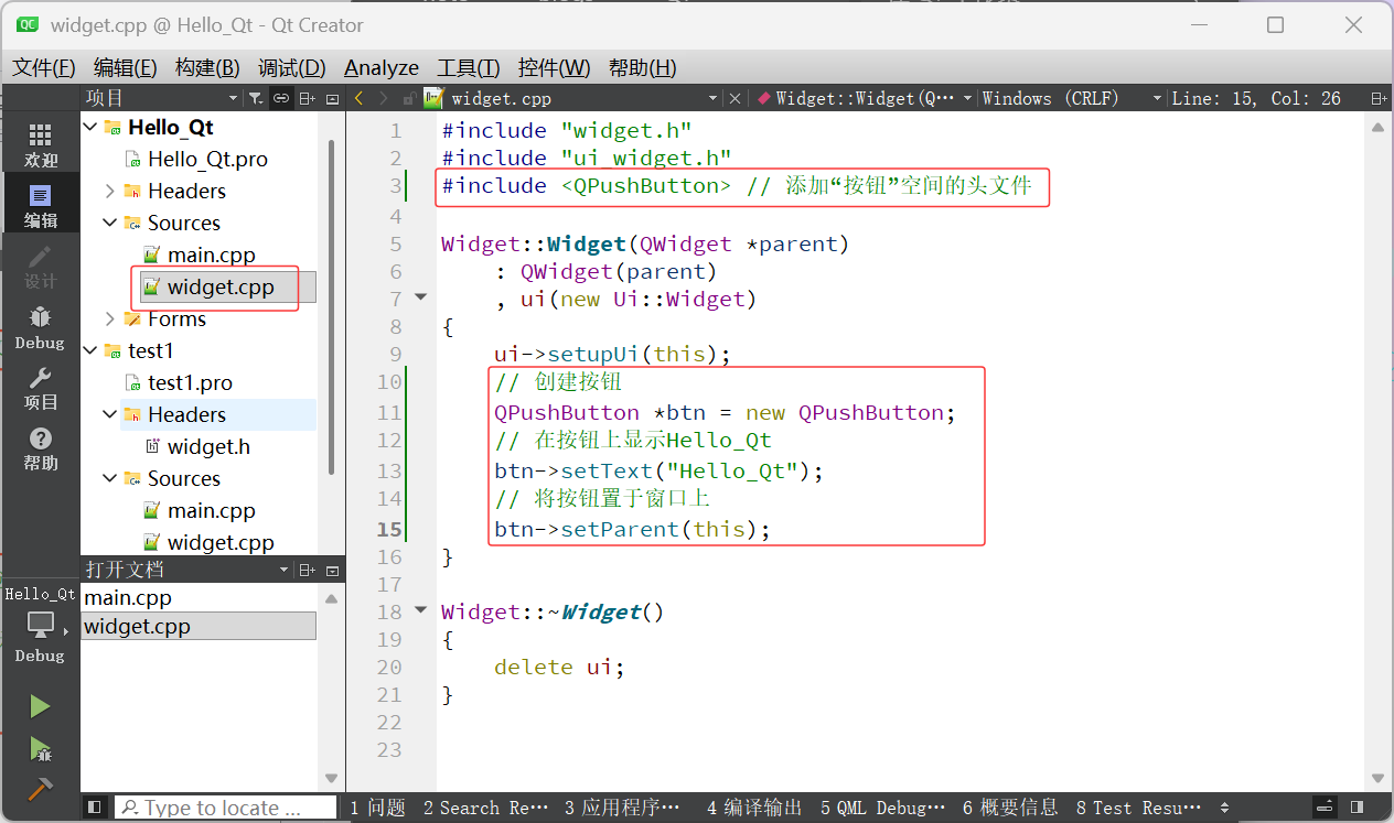 工程中包含的源文件:SOURCES += main.cpp/widget.cpp