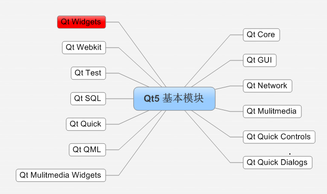 QT += core gui // Qt 包含的模块 Qt5 包含的模块如下图所示: