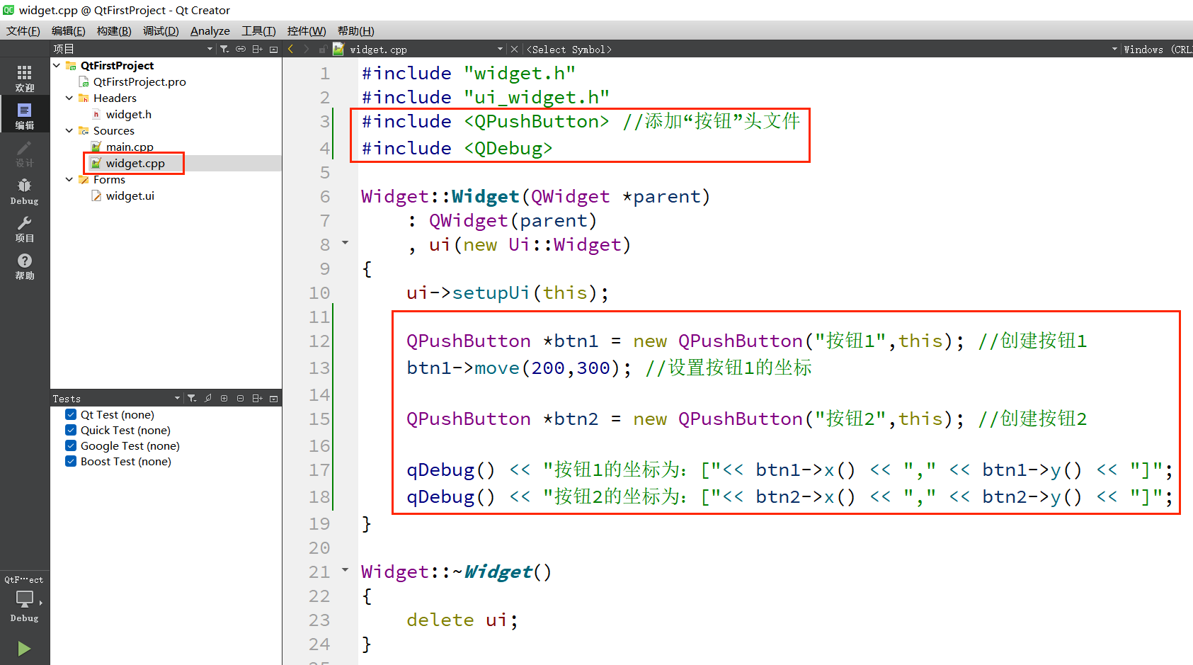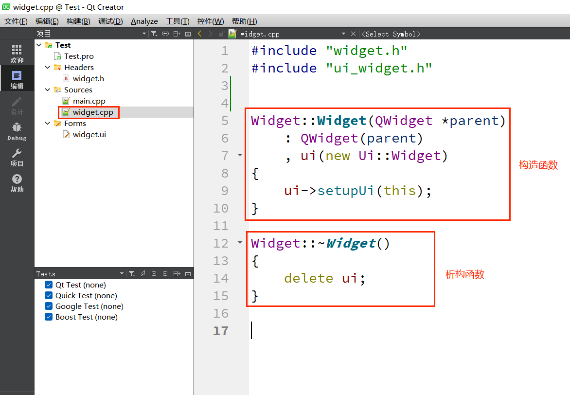 widget.cpp 文件是类 Widget 的实现代码,所有在窗体上要实现的功能添加在此文件中。