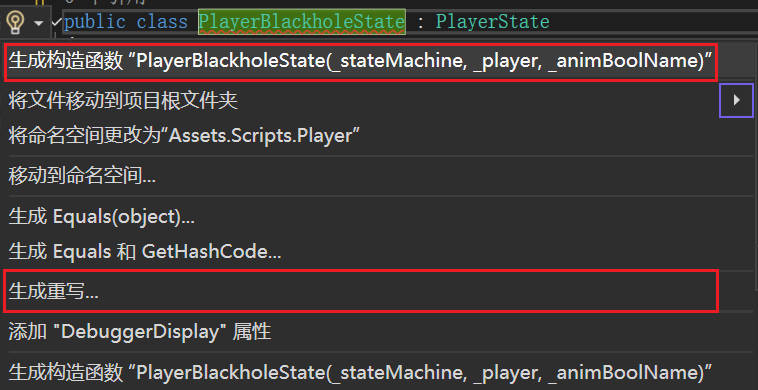 创建黑洞状态PlaerBlackholeState,它们继承自PlayerState。