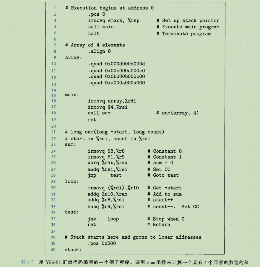 (1)代码起始:.pos 0指示代码从地址0开始。