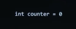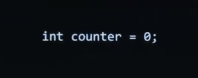 If I want in C a variable called counter and I want to set it equal to 0, I use a single equal sign because logically you read it from right to left. But that's not enough in C. What's missing from the screen ?