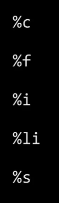 And here is a list of most of the popular format codes that you might ever care about with printf. In particular, we saw %s for string. And you can perhaps guess which one we're going to use for integers. And this is the kind of thing that you can consult in the manual pages or a slide like this. There's only a few of them that you might frequently use. But let's go ahead and use integers in a more interesting context, not just using functions. But let's revisit this idea of conditionals. And conditionals in Scratch were like these proverbial forks in the road. Like, do you want to do this thing or this thing or this other thing ? It's a way of making decisions in a program, which is going to be super useful and pretty much omnipresent in any problems, that we try to solve. So let me give you a few more building block in C by doing the side - by - side comparison again.