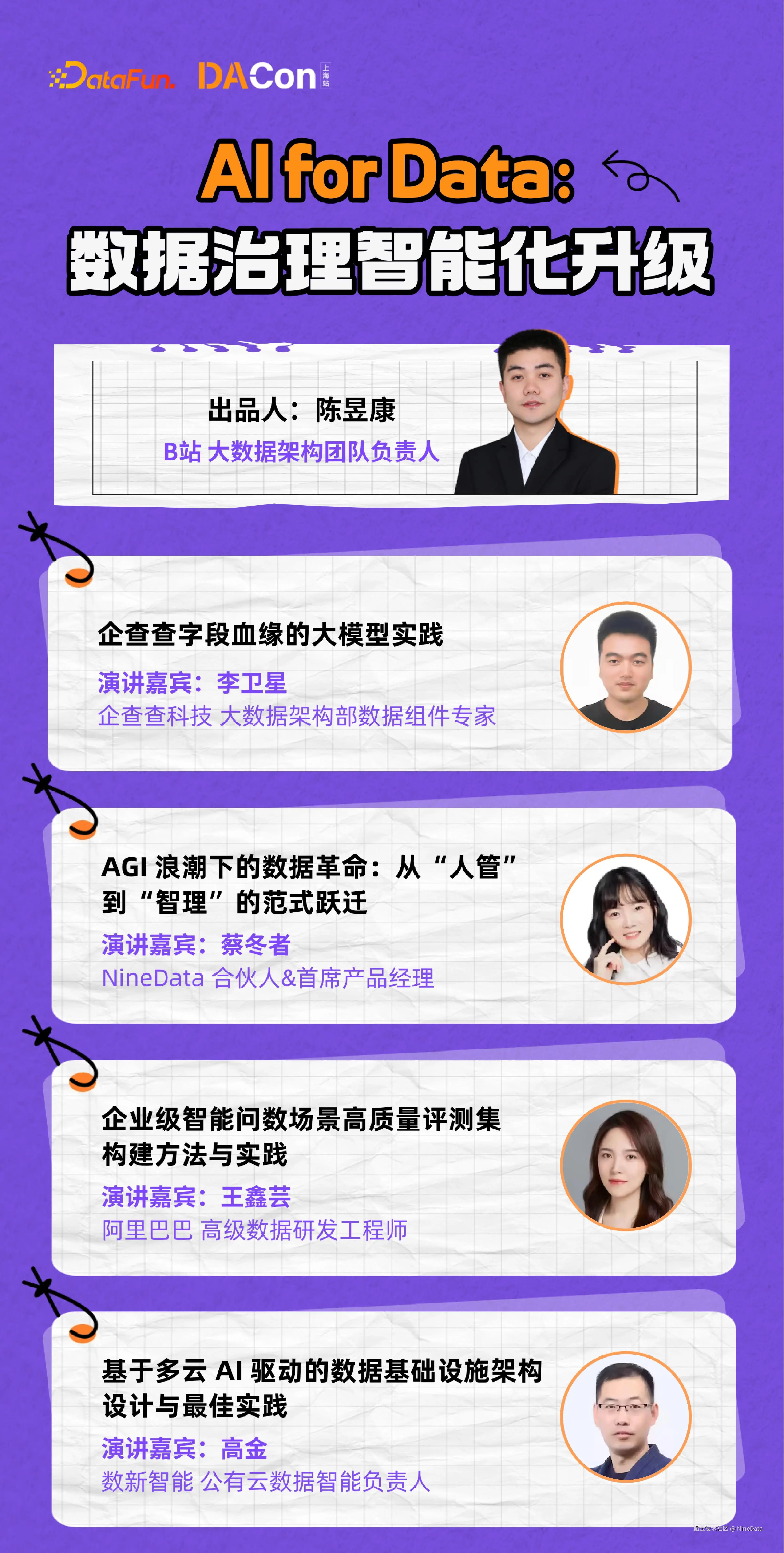 欢迎在4月24日来到DACon 2026上海站AI for Data:数据治理智能化升级分论坛,与NineData一起探讨AGI浪潮下的数据革命,看看数据管理如何真正完成从"人管"到"智理"的范式跃迁。