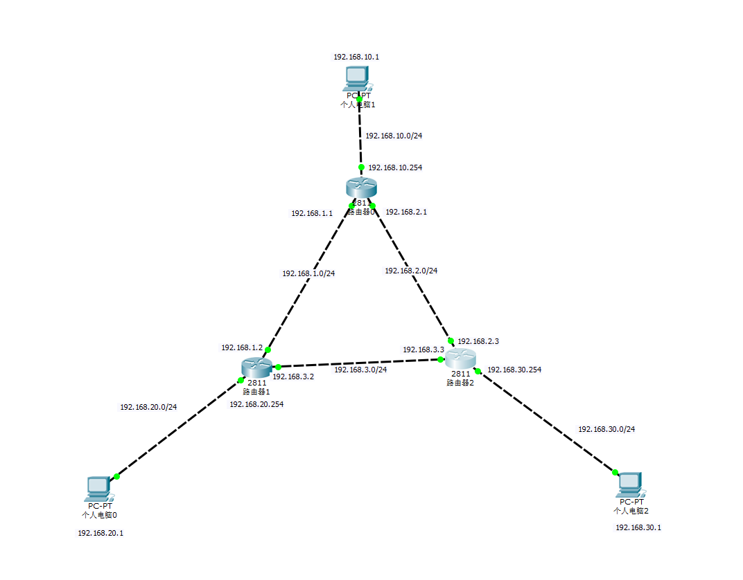 R2 收到去 30 网段的包,会直接发给 R1,R1 再转发给 R3,路径就是 R2->R1->R3,不会走 R2-R3 直连。