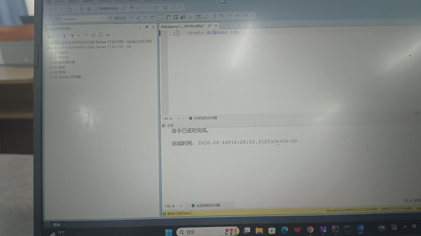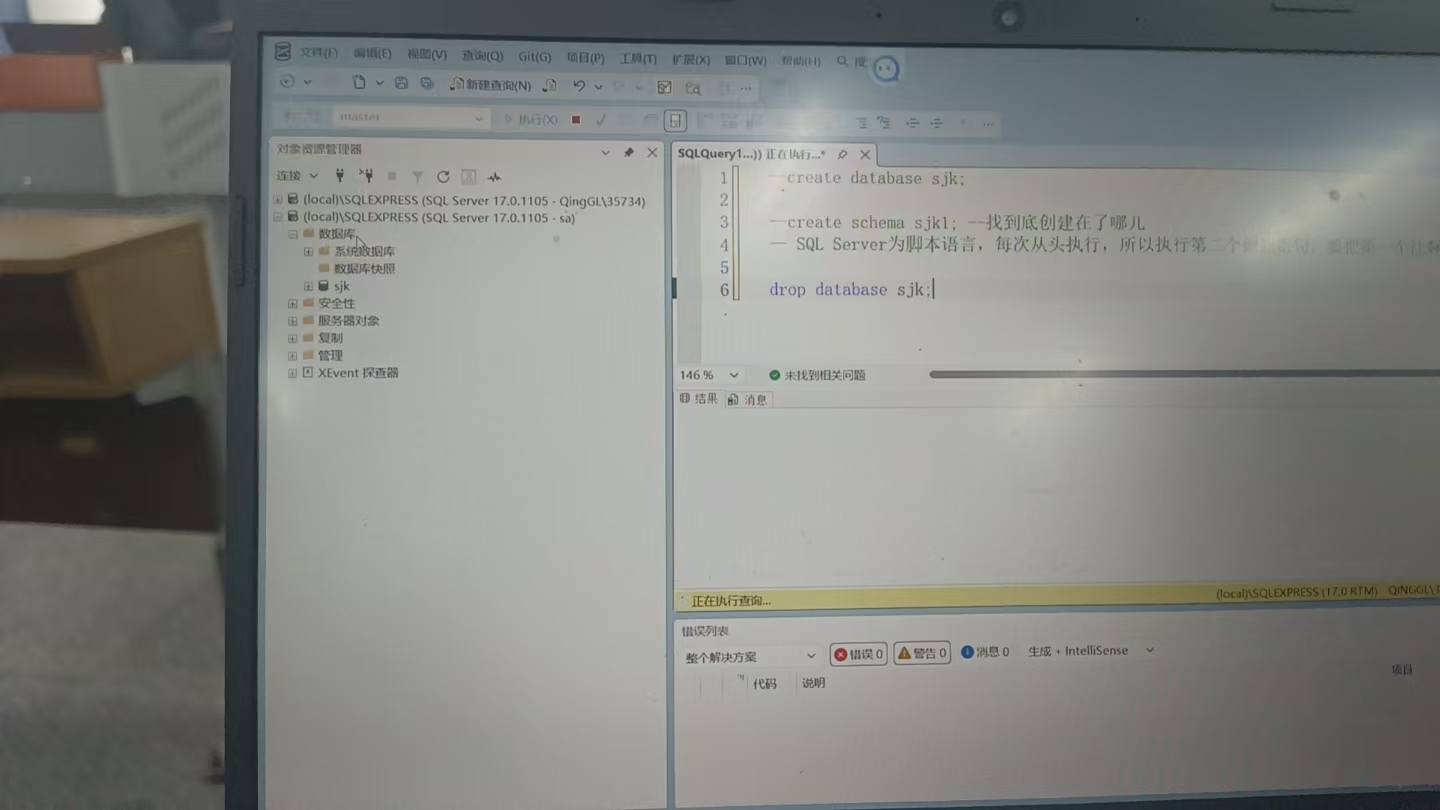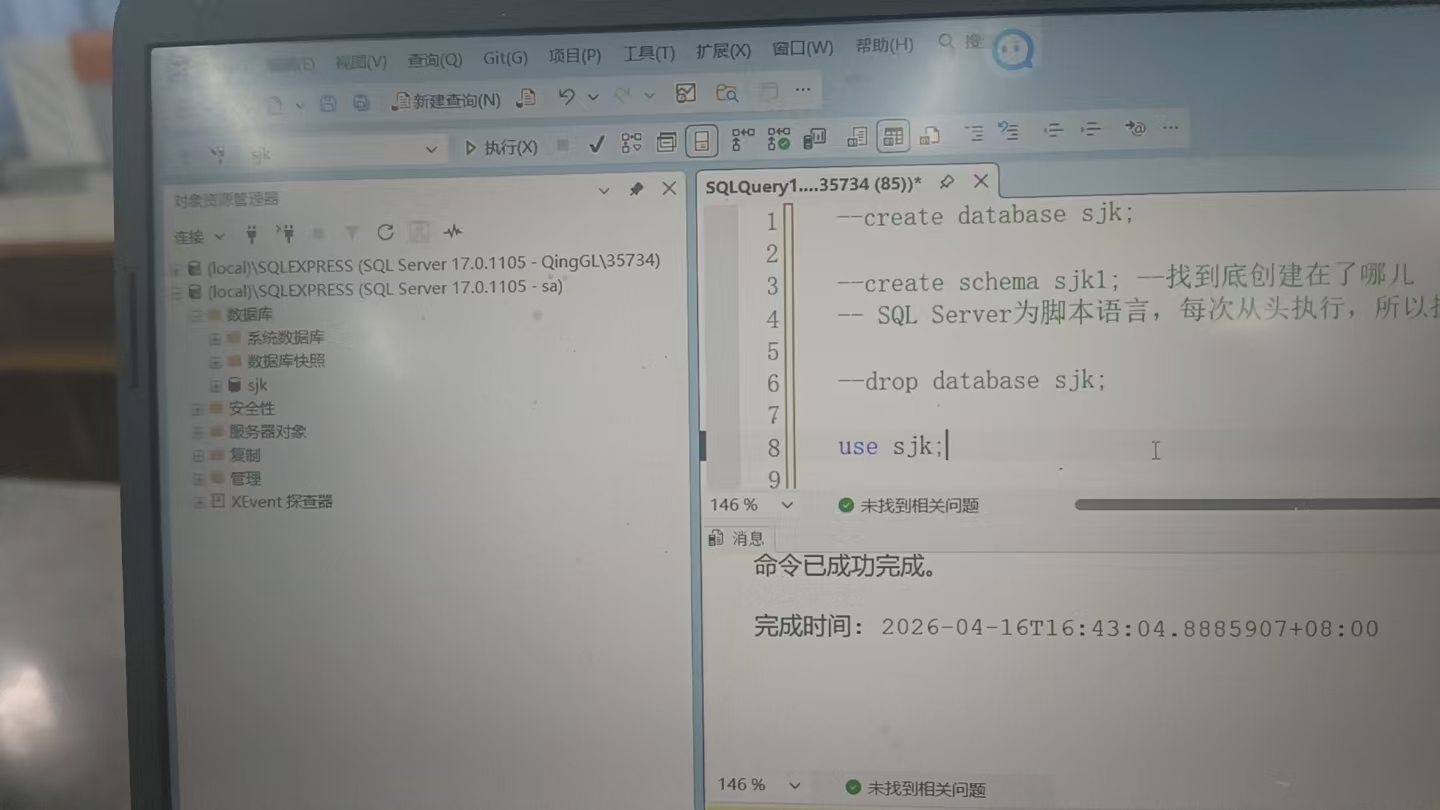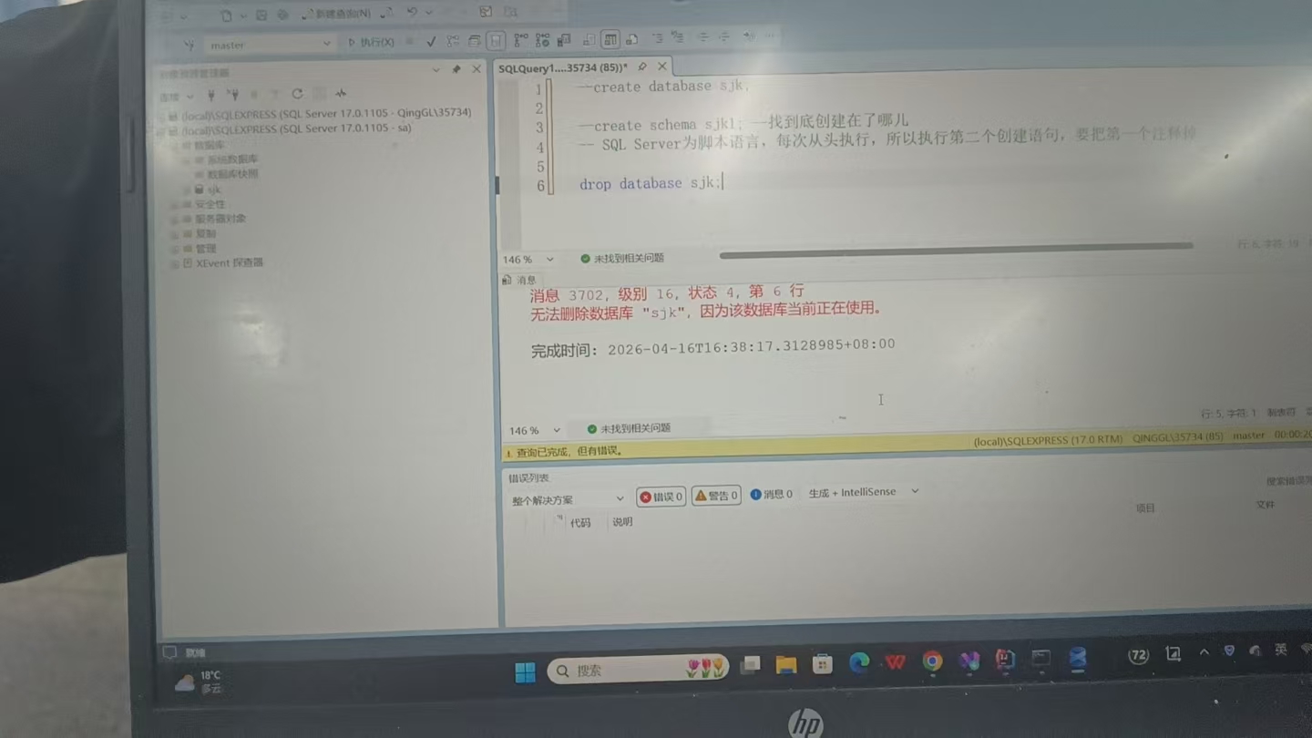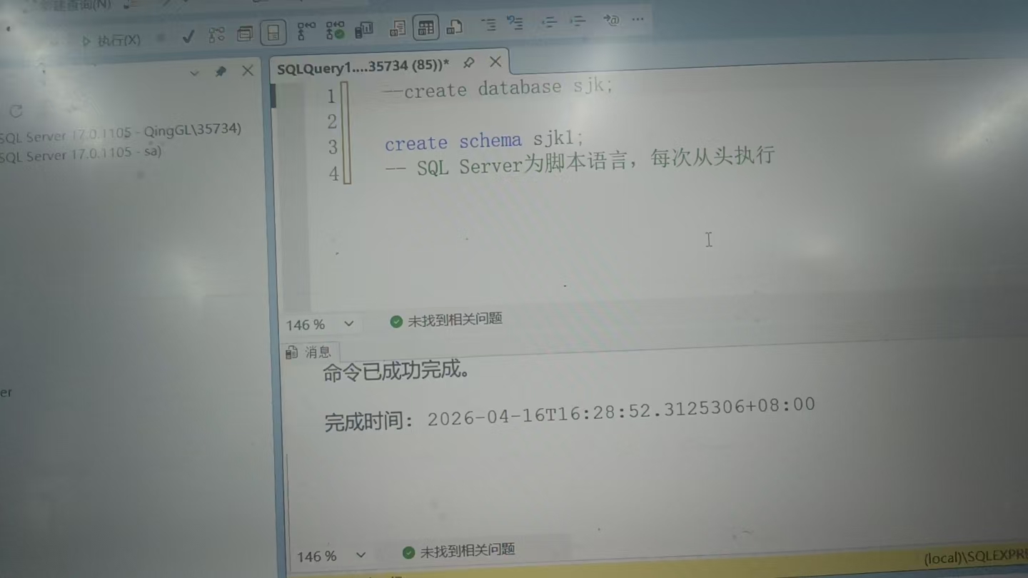 如上图,SQL Server为脚本语言,每次从头执行,所以执行完的语句就注释掉,不然会报错。