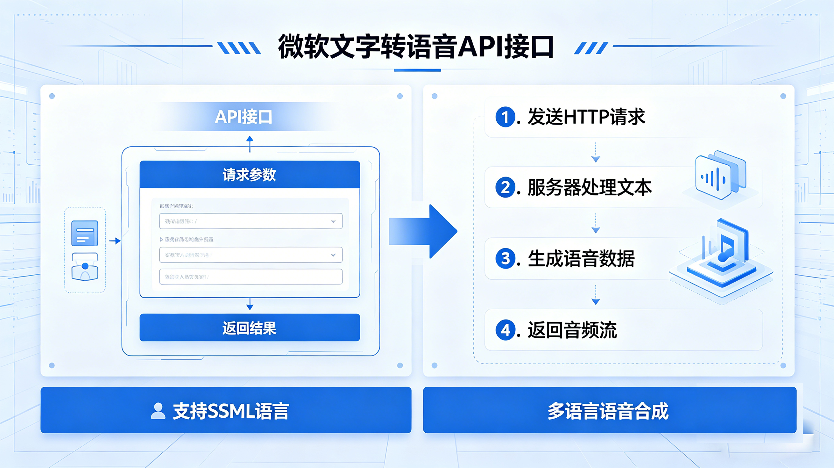 微软 TTS 作为企业级 AI 语音服务,以高拟真、强稳定、全球化的特性广泛应用于各行业。我们深度整合微软 TTS 技术能力,面向企业与开发者提供标准化 API 接口,覆盖多音色、多语言、自定义发音与音频格式等需求,提供稳定可靠的服务支撑与技术保障,助力业务快速落地语音合成场景,提升产品体验与服务效率。
