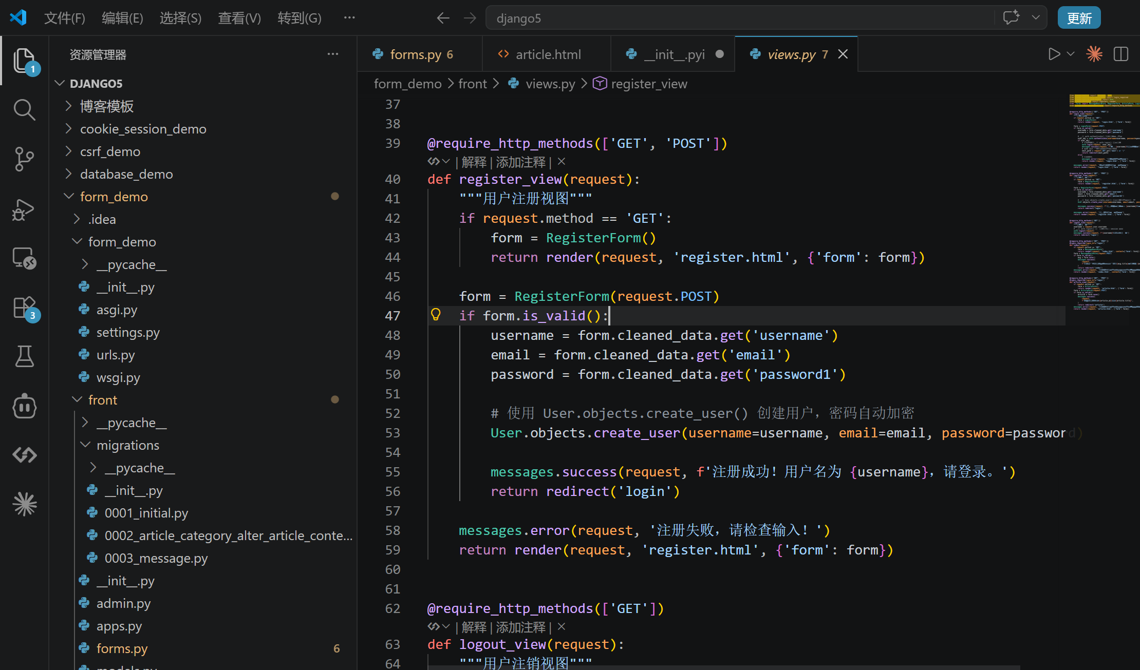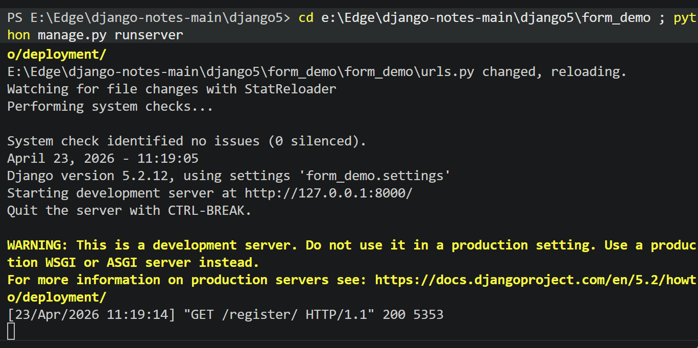 - 打开浏览器访问 http://127.0.0.1:8000/register/
