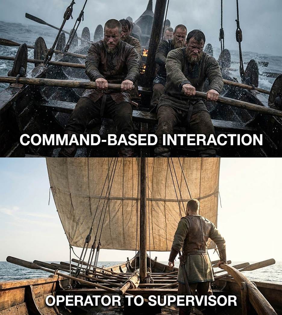 在基于意图的界面中,用户将部分计划外化:他们不再是在导航,而是在委托。系统现在必须解释目标、选择子目标、安排行动、获取权限并处理异常。这将系统推入经典的自动化角色,而人因研究已经对此进行了数十年的研究:一旦自动化接管了规划和行动选择,用户就从操作者转变为监督者。监督控制与 direct manipulation 有着不同的失效模式,它需要不同的设计保障措施。