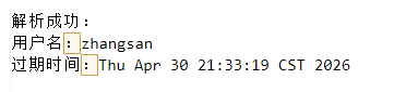return "解析成功:\n用户名:" + username + "\n过期时间:" + expire;