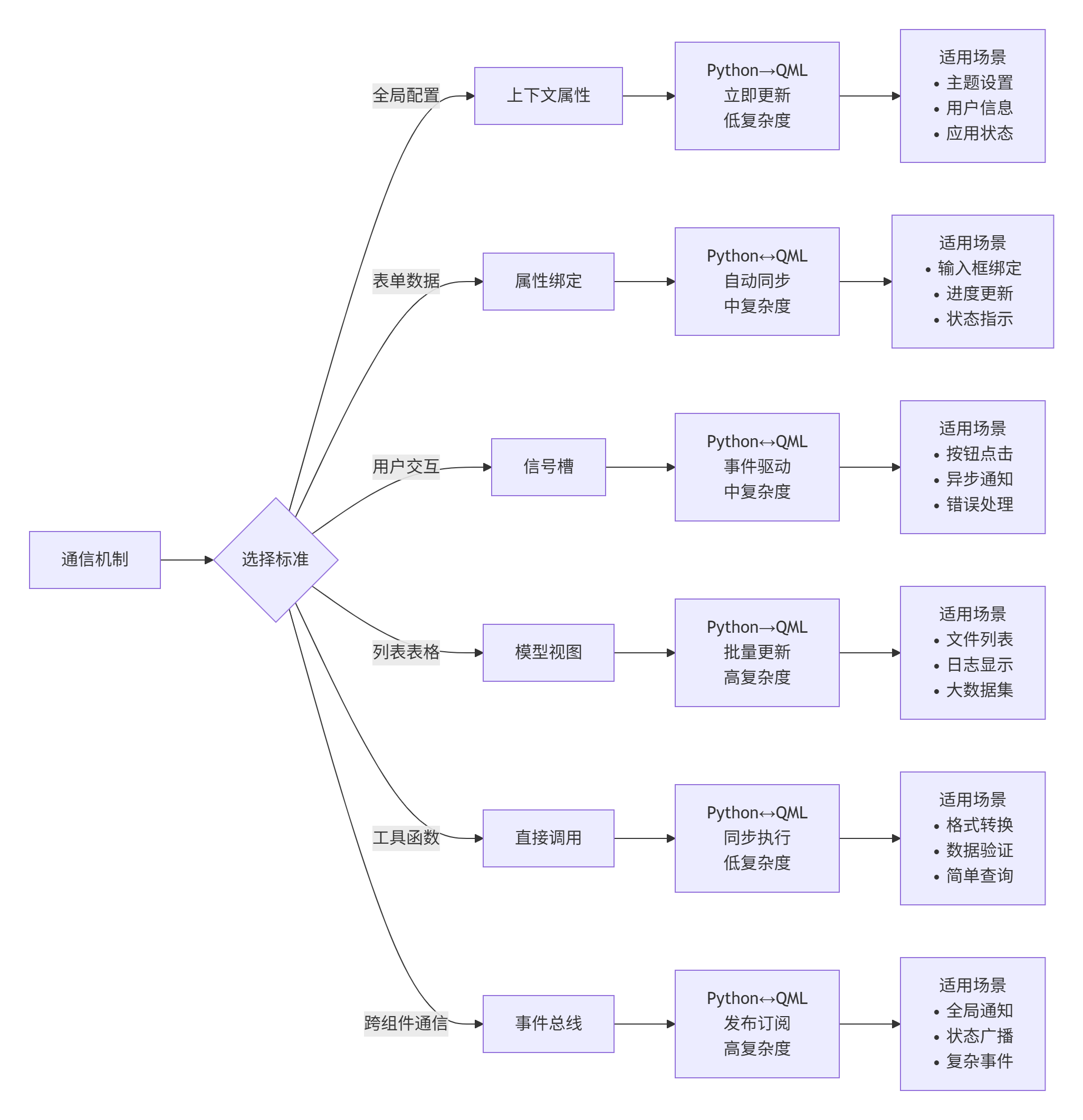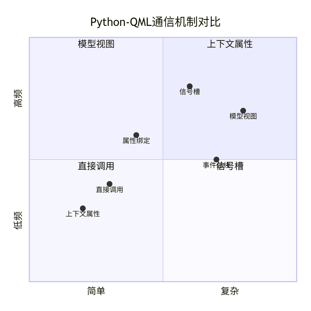 在深入代码之前,让我们先理解Python与QML之间的各种通信方式及其适用场景: