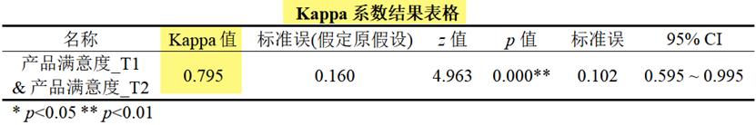 调整Kappa值越大越好,一般大于0.6即说明内容效度良好,但如果调整Kappa值小于0.4则无法接受。