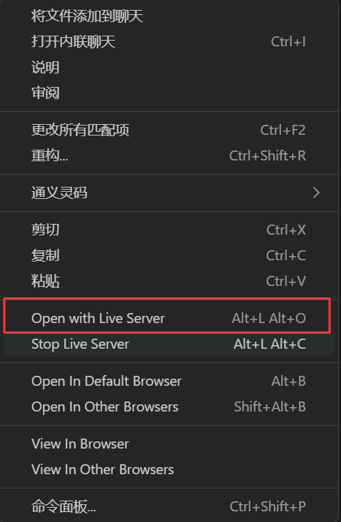 这个插件可以让我们写好的实时反映在浏览器页面上,右键内容点击下面这个就可以启动了~