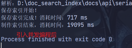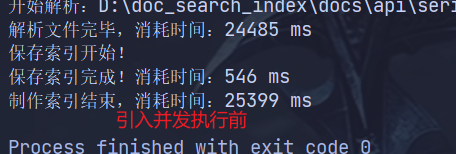 我们获取下每个执行方法的时间戳,会发现解析文件消耗了大量时间,这是因为 run() 方法采用单线程串行执行,文档数量越多,耗时呈线性增长,CPU 核心完全浪费。可以采用固定大小线程池并行解析文档,将 读文件和分词、建索引任务并发执行,最大化利用硬件资源。