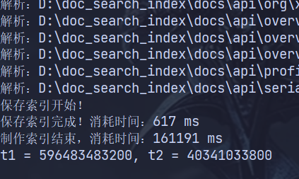 System.out.println("制作索引结束,消耗时间:" + (end - beg) + " ms");