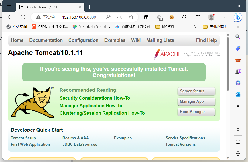 浏览器访问 http://<服务器IP>:8080,成功显示 Tomcat 欢迎页!