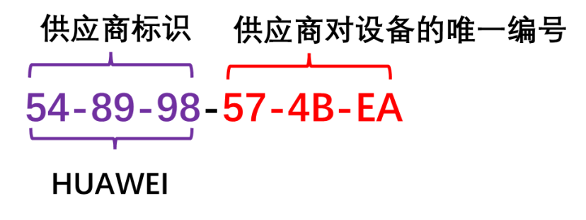 - 用 十六进制格式 来表示设备的唯一性,前半段为供应商标识 ,后半段为设备唯一编号。