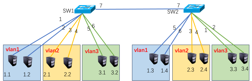 通过配置实现跨交换机的同Vlan主机通信: