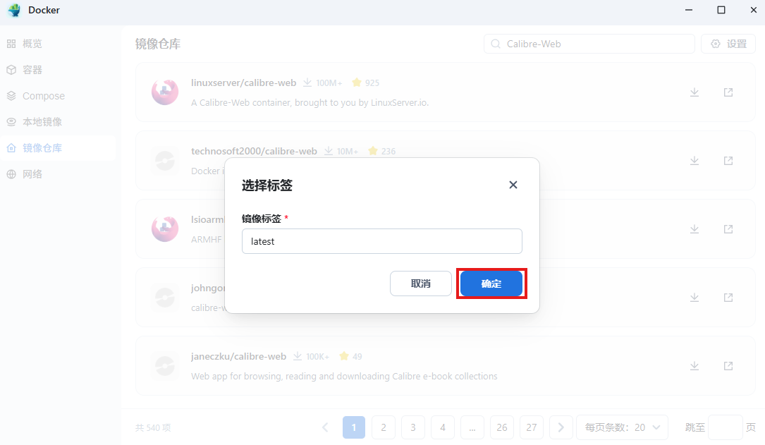 在镜像仓库搜索Calibre-Web: