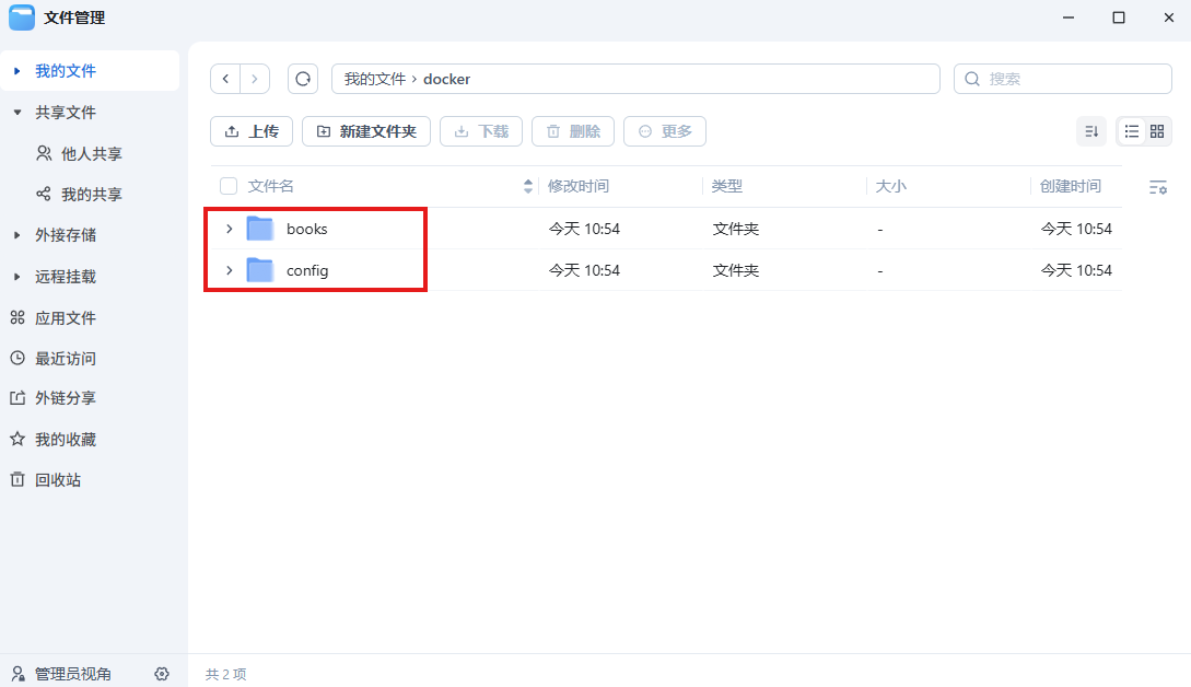 在docker文件夹下,新增两个文件books和config: