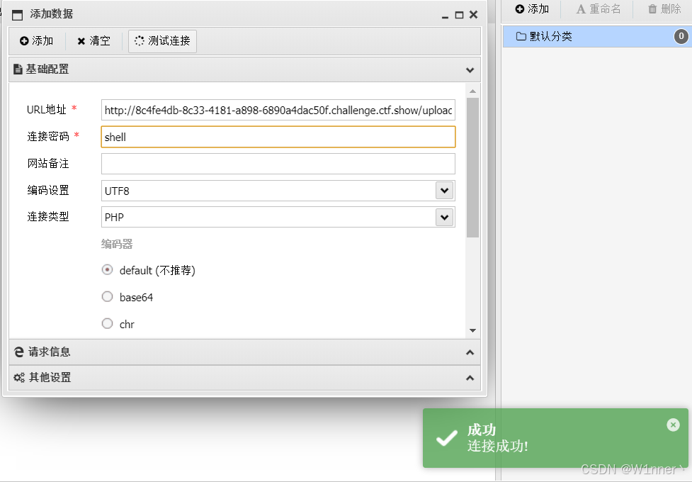 可以看到成功上传,这里使用蚁剑进行连接即可: