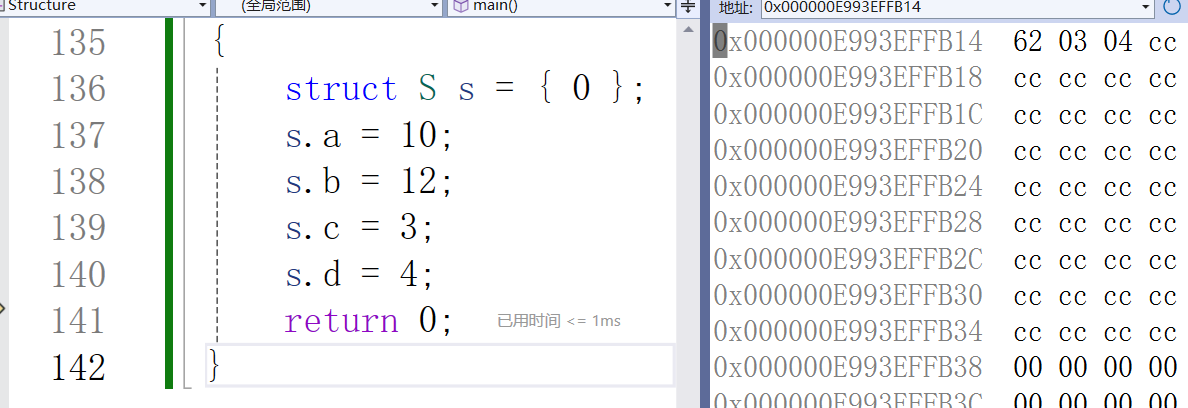 那么此时我们也能看到这个位段的大小是3个字节,测试一下看看: