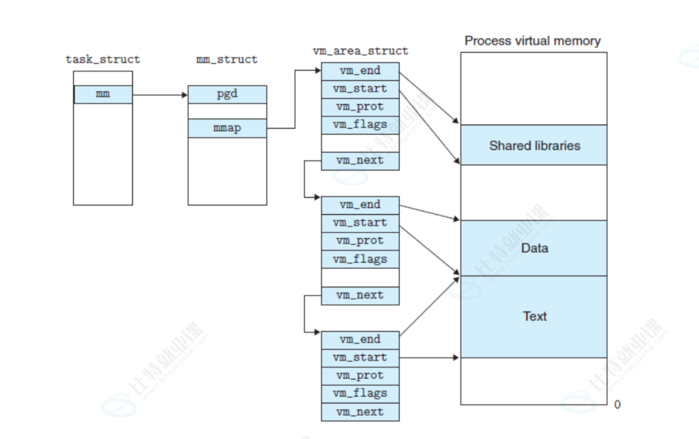可以总结出:mm_struct存的是每个区间的大致的范围,而vm_area_struct存的是所有精细的小区间。