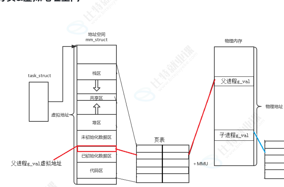 当在子父进程中对一个进行过写时拷贝的变量取地址,会发现两个进程中的地址相同,说明这里取出来的地址不是内存的真实地址而是虚拟地址(我们能用或见到的所有地址都是虚拟地址)。