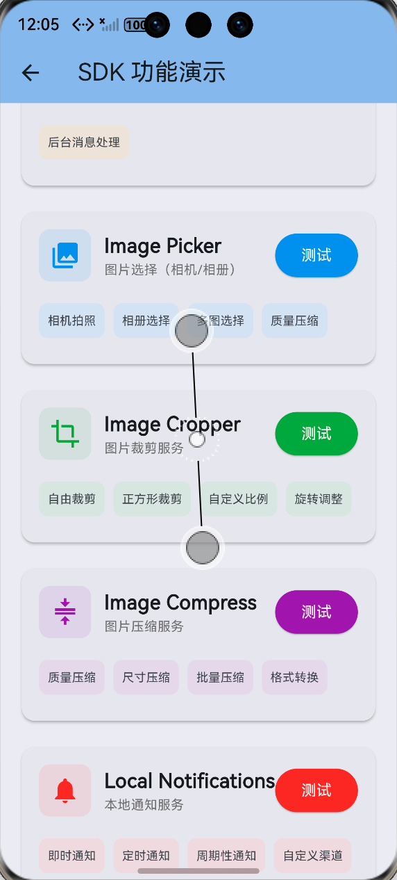 而且在鸿蒙设备上,原生的相册和相机调用逻辑和Android/iOS完全不一样,官方的image_picker库在鸿蒙上会遇到各种权限和兼容问题,比如无法读取相册、相机调用黑屏、多图选择失效等等。所以我这次的目标就是:找一个适配鸿蒙的图片选择方案,实现相机拍照、相册单选、相册多图选择这三个核心功能,而且要能在鸿蒙设备上稳定运行,不崩不卡!