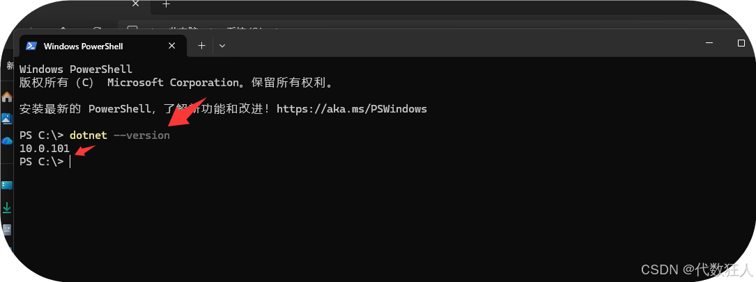 验证安装:安装完成后,打开命令行(终端/PowerShell)例如,在Windows开始菜单搜索cmd或PowerShell,输入 dotnet --version并回车。如果显示出版本号(例如10.0.101),即表示安装成功。