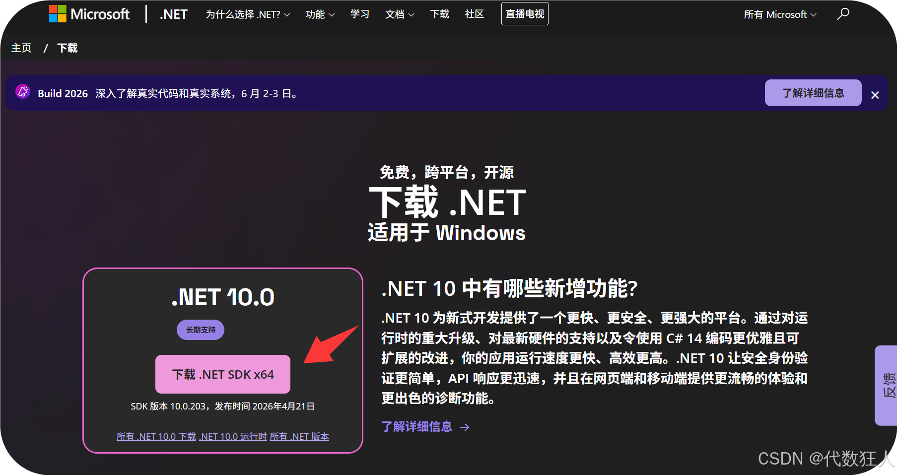 选择版本:下载并安装 .NET SDK(建议选择最新的长期支持版本,如 .NET 8 或 .NET 10 或更高)。这包含了运行和开发所需的一切。